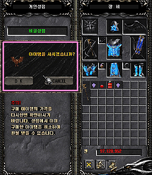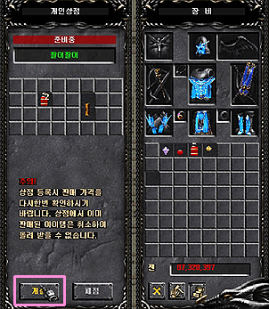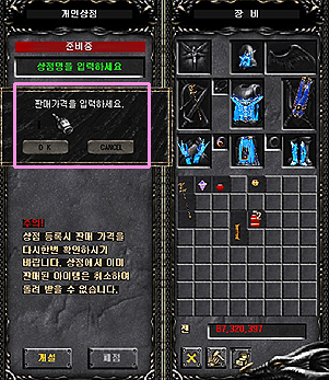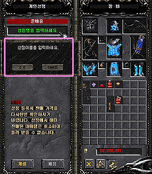 - Despues del pago, la informacion del Item vendido del inventario del Personal Store desaparecera. 6. Otros asuntos - Cuando salgas del juego o cierres la tienda los items que estan en el Personal Store estaran almacenados ahi. - Sin embargo, el nombre del Store y el precio de los Items se inicializan, haga click derecho en el item para restablecere el precio del Items.