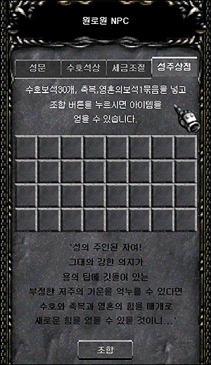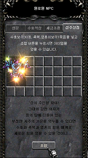 - Esta funcion de combinacion es exclusiva para el Lord que ocupa el Castle Siege de Valle of Loren. Permite obtener objetos especiales que no se consiguen actualmente, asi como objetos excellent y comunes. La combinaciones de los Lord solo se pueden realizar una vez al dia.